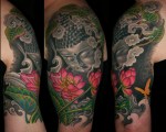 Many clients choose Buddha as the main component of their tattoo design. This choice is sometimes for religious reasons. I regularly incorporate elements of Buddhism in my tattoo designs such as flowers like the Lotus as well, Sanskrit writing and elements, such as fire.