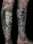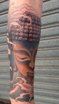 Of course tattooing a full Buddha as a sleeve is rewarding. A full and half sleeve tattoo requires multiple sittings. They usually involve a significant incorporation of colour and are very detailed.The third example below is a greywash buddha which is a great choice for clients with darker skin.