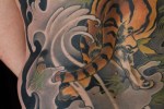 A tiger symbolises strength and supremacy. The Japanese or Asian Tiger is a common tattoo request because of the ideals the customer is hoping to impersonate through their body art.